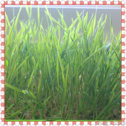 因家中的調理機壞了,所以全家一起學習牛吃草的方法,直接將小麥草放入口中咀嚼,剛入口時味道不太好,但是咬到最後竟有甘草的味道滿口回甘,是很新鮮的體驗,不過咬到最後的渣渣很硬,就沒辦法學牛一樣吞下肚了!