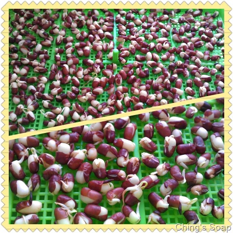 使用淨水清洗紅豆後浸泡6~8小時,平均分佈於培育網上並蓋上上遮蓋